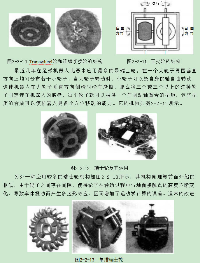 連續切換輪的基礎為T(mén)ranswheel 輪,由一個(gè)輪盤(pán)和固定在輪盤(pán)外周的滾子構 成。輪盤(pán)軸心同滾子軸心垂直,輪盤(pán)繞軸心由電機驅動(dòng)轉動(dòng),滾子依次與地面接 觸,并可繞自身軸心自由轉動(dòng),結構如圖2-2-9所示。采用這種輪子設計了幾種不 同的足球機器人17.18],所存在的問(wèn)題與Swedish 輪相似,就是輪盤(pán)轉動(dòng)時(shí),滾子同 地面接觸不連續,使機器人產(chǎn)生振動(dòng)和打滑。