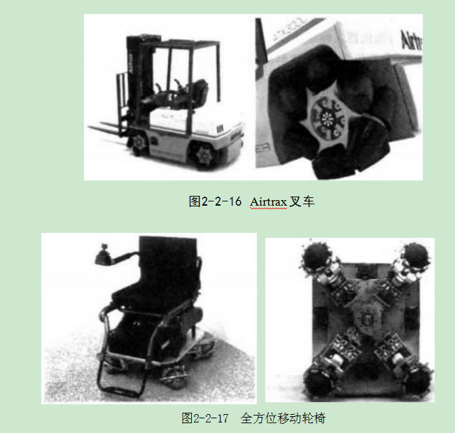 現在比較常見(jiàn)的全方位移動(dòng)機構有:空氣懸浮式,全輪轉向式,如圖2-2-3 所示。麥卡納姆輪(MECANUM)S~7, 球履帶全方位移動(dòng)機構8等。
