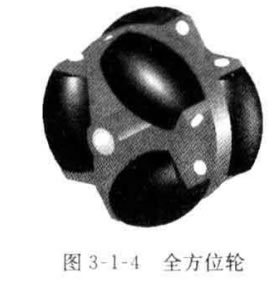 全方位輪種類(lèi)很多,本節以圖3-1-4中所示的全方 位輪為例進(jìn)行討論,它的組成是在輪轂的外緣上設置有 可繞自己的軸旋轉的輥子,且均勻分布于輪轂周?chē),這 些輥子軸線(xiàn)(E) 和輪轂軸線(xiàn)(S,) 的夾角a 為90°。該麥 卡納姆輪由雙排自由滾動(dòng)的輥子組成,使得輪子在地面 滾動(dòng)時(shí)形成連續的接觸點(diǎn)。而在運動(dòng)時(shí)輪轂是驅動(dòng)機 構,輥子是從動(dòng)機構,因此在本節中主動(dòng)輪由圖3-1-5 所示車(chē)輪輪轂與邊沿輥子組成,從動(dòng)輪為車(chē)輪輥子,主 動(dòng)輪、從動(dòng)輪與地面接觸點(diǎn)均為輥子與地面的接觸點(diǎn)。
