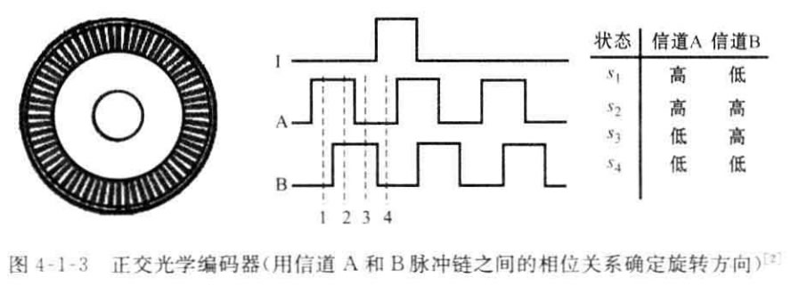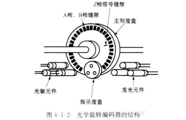 以圖4-1-2為例說(shuō)明光學(xué)編碼器的結構。光學(xué)編碼器由發(fā)光元件、屏蔽光的固 定光柵、與轉軸一起旋轉的帶光柵的轉盤(pán)和固定的光敏元件組成。發(fā)光元件和光敏 元件安放在碼盤(pán)的兩側,當轉盤(pán)轉動(dòng)時(shí),根據固定的和運動(dòng)的光柵的排列,光敏元件 接收的光通量會(huì )發(fā)生變化。光敏元件輸出的波形經(jīng)過(guò)整形后形成脈沖,根據脈沖計 數,可以得到固定在碼盤(pán)上的轉軸的角位移。在測量中,Z后得到的光強信號用閾 值變換成離散的方波,在亮和暗的狀態(tài)之間作選擇。分辨率以每轉周期數(CPR)度量。Z小的角分辨率可以容易地從編碼器的CPR 額定值計算出。典型的編碼 器可擁有2000 CPR, 而光學(xué)編碼器工業(yè)可容易地制造出具有10000 CPR 的 編 碼 器。當然,根據所需的帶寬,Z關(guān)鍵的是編碼器需要足夠快,以計算期望的軸轉速。