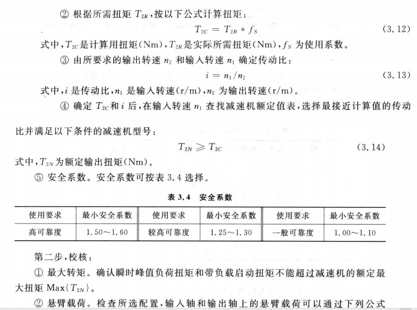 (4)精密行星減速機選型及其問(wèn)題。選用精密行星減速機應考慮其結構類(lèi)型、安裝 形式、承載能力、輸出轉速、工作條件等因素。減速機的承載能力是在額定轉速下,每天 工作10小時(shí)和啟動(dòng)數少于10time/h 及平穩無(wú)沖擊的條件下得出的,所以應按以下步驟 進(jìn)行選型[97]。