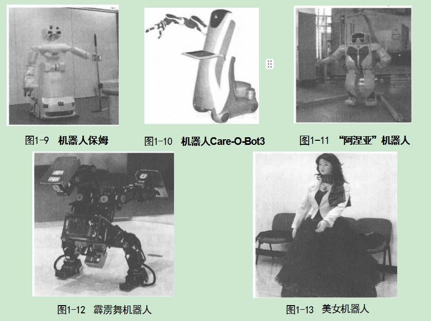 圖1-11所示機器人是俄羅斯利用“新紀元”公司許多d特研究研制的人形機器人“阿 涅亞”,這款機器人是一種能夠雙腳行走,還能與人對話(huà)的服務(wù)機器人,它擁有世界先進(jìn)的 機械結構和程序保障系統。